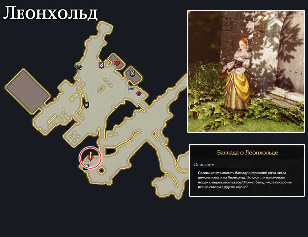 Эту балладу захочет написать девушка-менестрель Селина после завершения вами сюжетного задания «Слова на камне» в Леонхольде. Вы увидите появление квеста на карте.