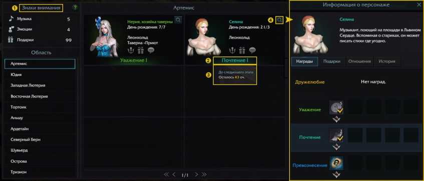 По достижении уровня «Превознесение» с конкретным NPC оказывать ему знаки внимания в дальнейшем будет нельзя.