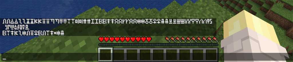 Новый шрифт illageralt — руноподобный шрифт из Minecraft Dungeons. Пока доступен только с помощью команд.