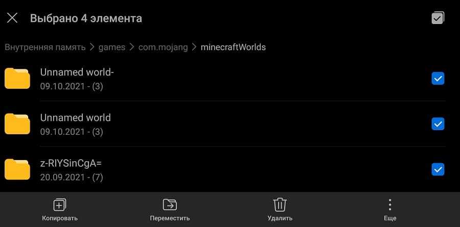 Теперь выделите папки с мирами и выберите опцию переместить или копировать.