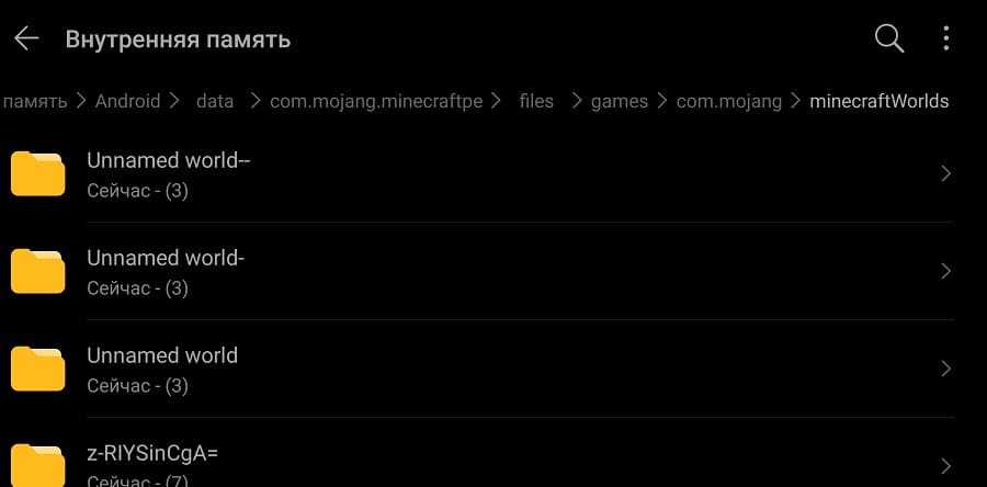 - Новый путь: /Android/com.mojang.minecraftpe/files/games/com.mojang/minecraftWorlds