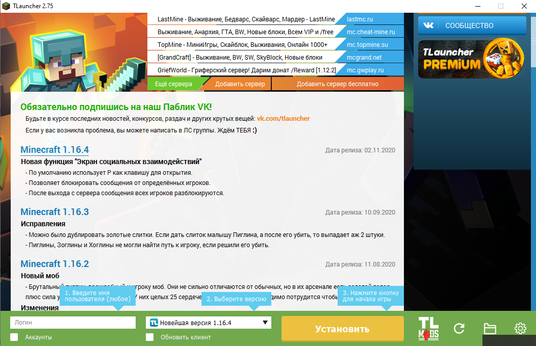 Программирование возможно только в версии force 1.7.10, при наличии нужного модуля. Но вот поиграть в различные релизы можно всегда! Тлаунчер отличный инструмент для ознакомления с Майнкрафтом самых различных релизов. Для установки нужного достаточно его выбрать в списке и нажать Установить