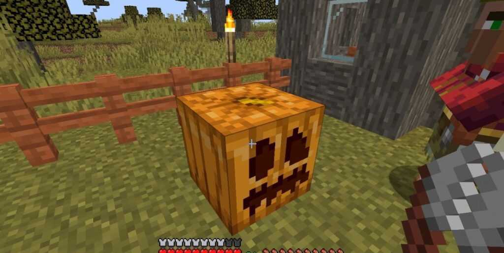 Есть и другие способы достать тыкву в «натуральном» виде. Первый метод — найти ближайшую деревню и фермера. Обычно они обменивают 8-13 тыкв на 1 изумруд.