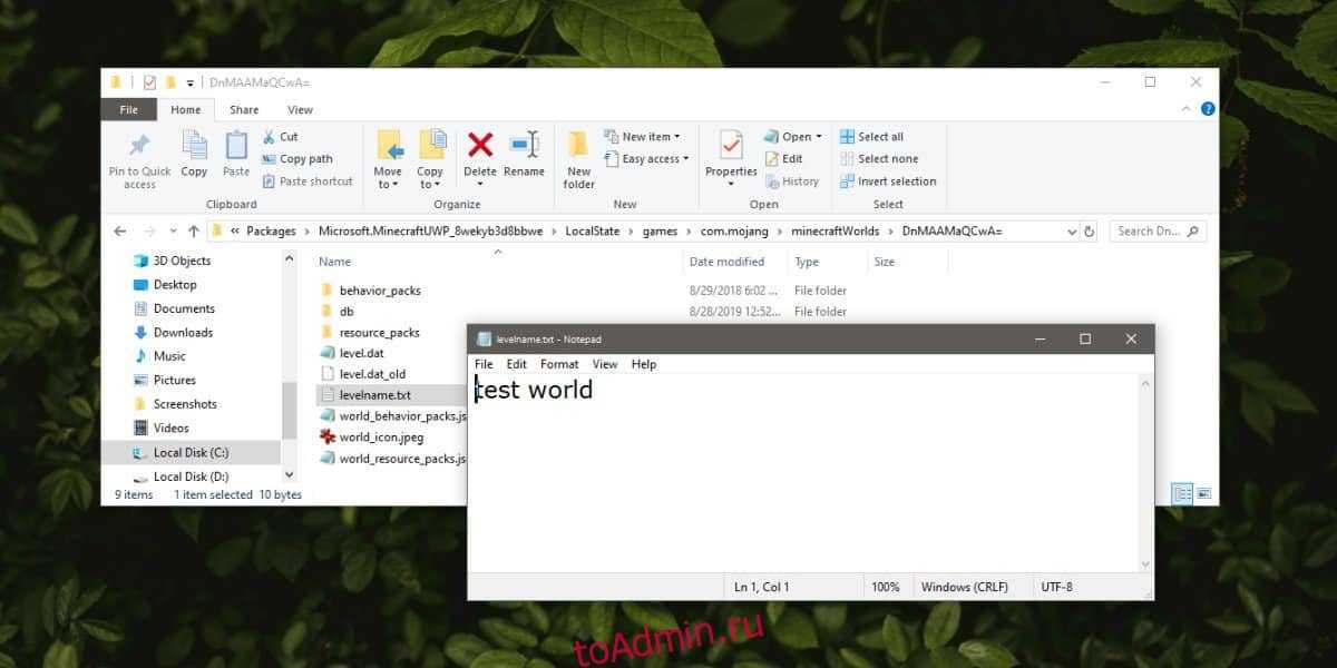 Чтобы создать резервную копию единого мира, вам нужно сначала его идентифицировать. Откройте папку и найдите внутри текстовый файл с именем levelname. Откройте его, и внутри вы увидите название мира. Имя будет соответствовать тому, что вы ввели в Minecraft при создании мира.