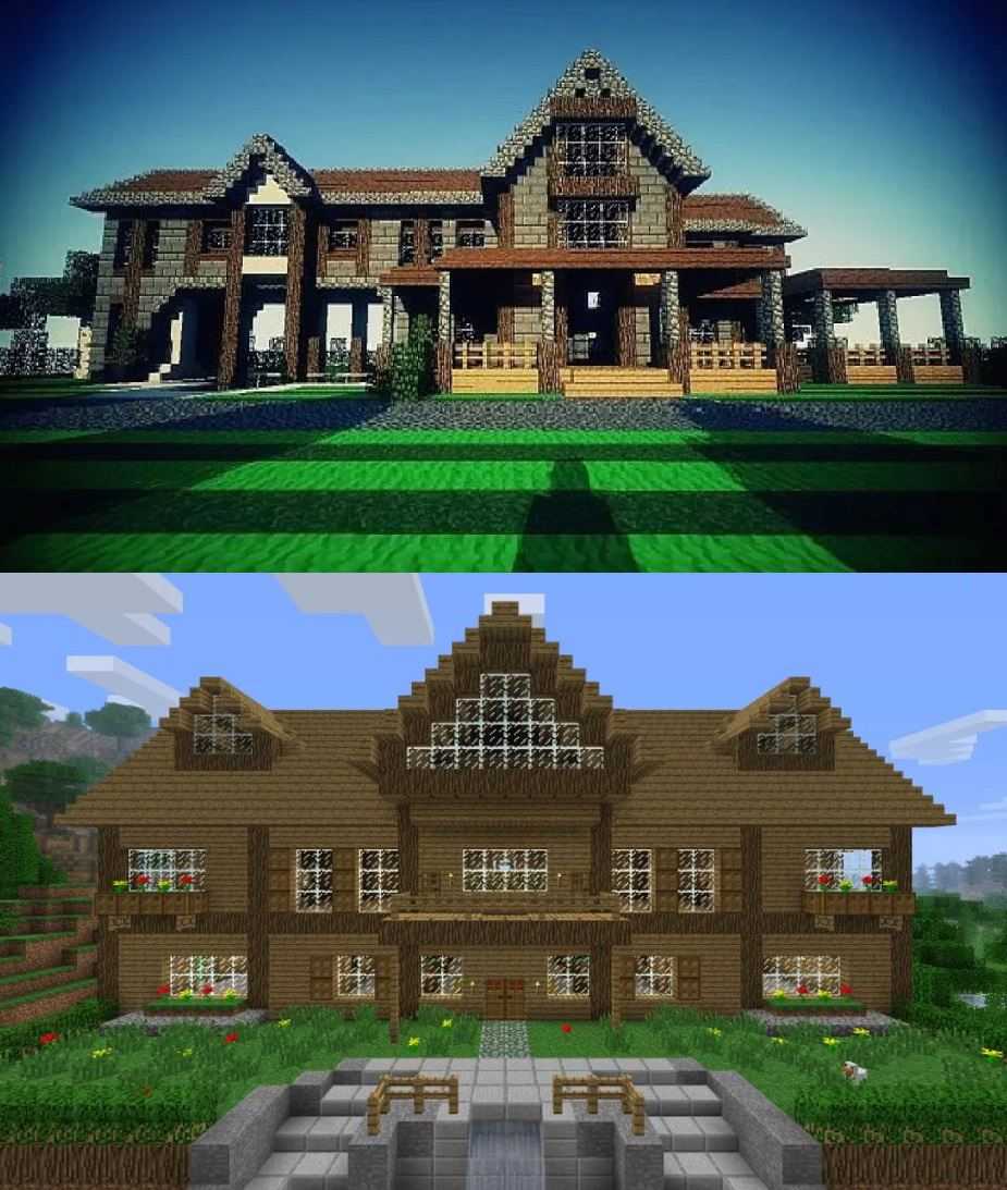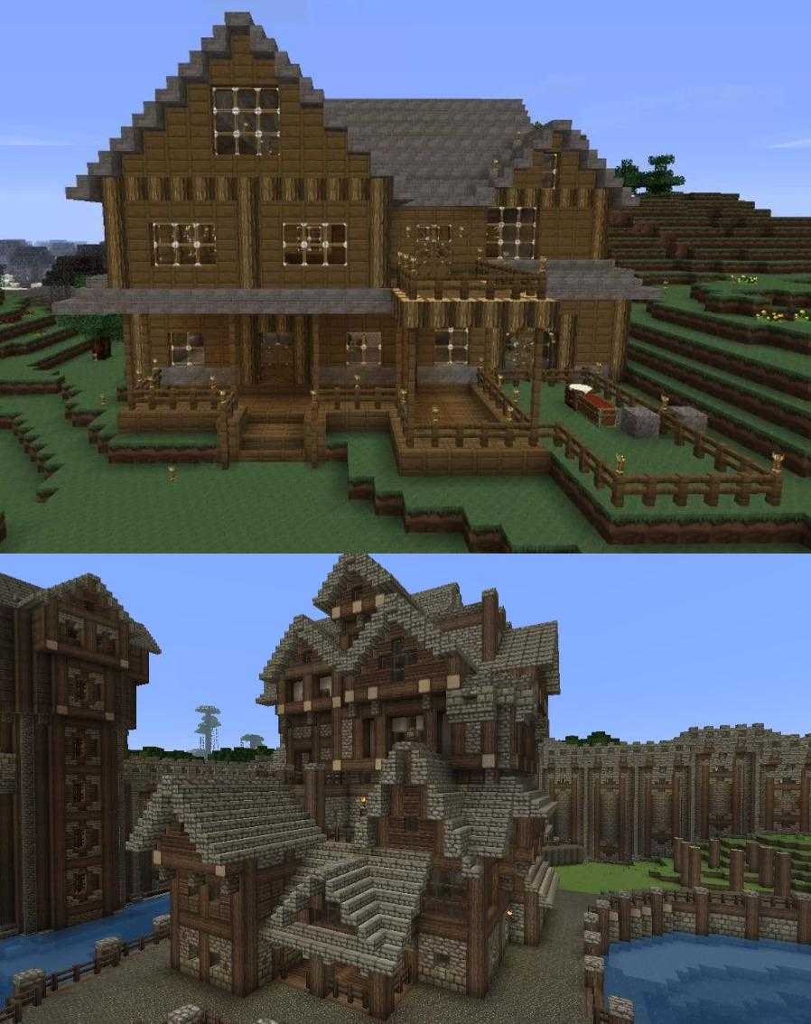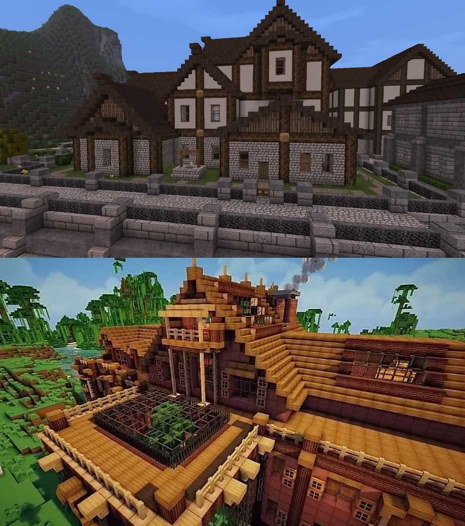 Более опытные игроки предпочитают обзаводиться коттеджами и поместьями. Для их постройки требуется несколько видов материалов достаточной прочности, в том числе и стекло. Строить их тяжело, но получаются они очень красивыми. Самый простой вариант – это каменный коттедж с фермой и шахтой, снаружи обнесенный стеной. Дома такого типа требуют много места, но они защищены со всех сторон, что является большим плюсом для их обладателей.