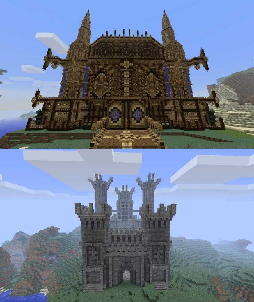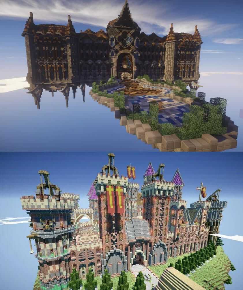 Самые красивые дома, которые олицетворяют богатство и благополучие в Майнкрафт – это замки. Возведение большого замка занимает несколько дней даже у самых опытных игроков Minecraft. Построить его достаточно тяжело, но, если все сделать правильно, замок будет практически неуязвимым. Новички должны знать, что процесс строительства может затянутся, а в подвалах замков нередко появляются криперы.