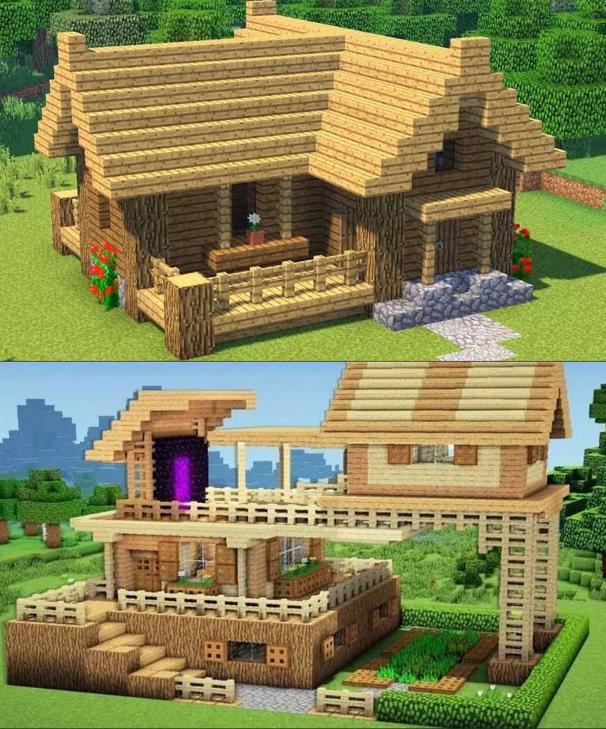 Майнкрафтеры, выбирающие природные материалы, строят дома из дерева, которые обычно не отличаются большими размерами, но удовлетворяют все потребности героя в Minecraft. К тому же они удачно вписываются в натуралистичную среду обитания.