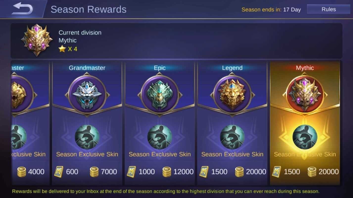 Система рангов построена на 7 позициях: воин, элита, мастер, гранд мастер, эпик (эпический), легенда и миф (мифический).