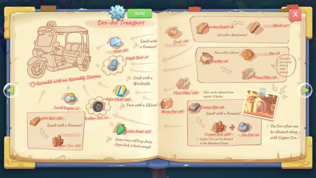 Чтобы зарекомендовать себя как строитель, сперва я должен был сделать топор из камня и дерева. Затем скрафтить кирку. Третьим заданием было собрать многосекционный мост из медных труб и твёрдых пород дерева, что потребовало несколько новых верстаков и ресурсов (включая новый топор, способный рубить именно деревья твёрдых пород). Моё текущее задание — построить целую чёртову машину. Так что будьте готовы к некоторому скачку сложности от создания деревянного топора до масштабных конструкторских работ.