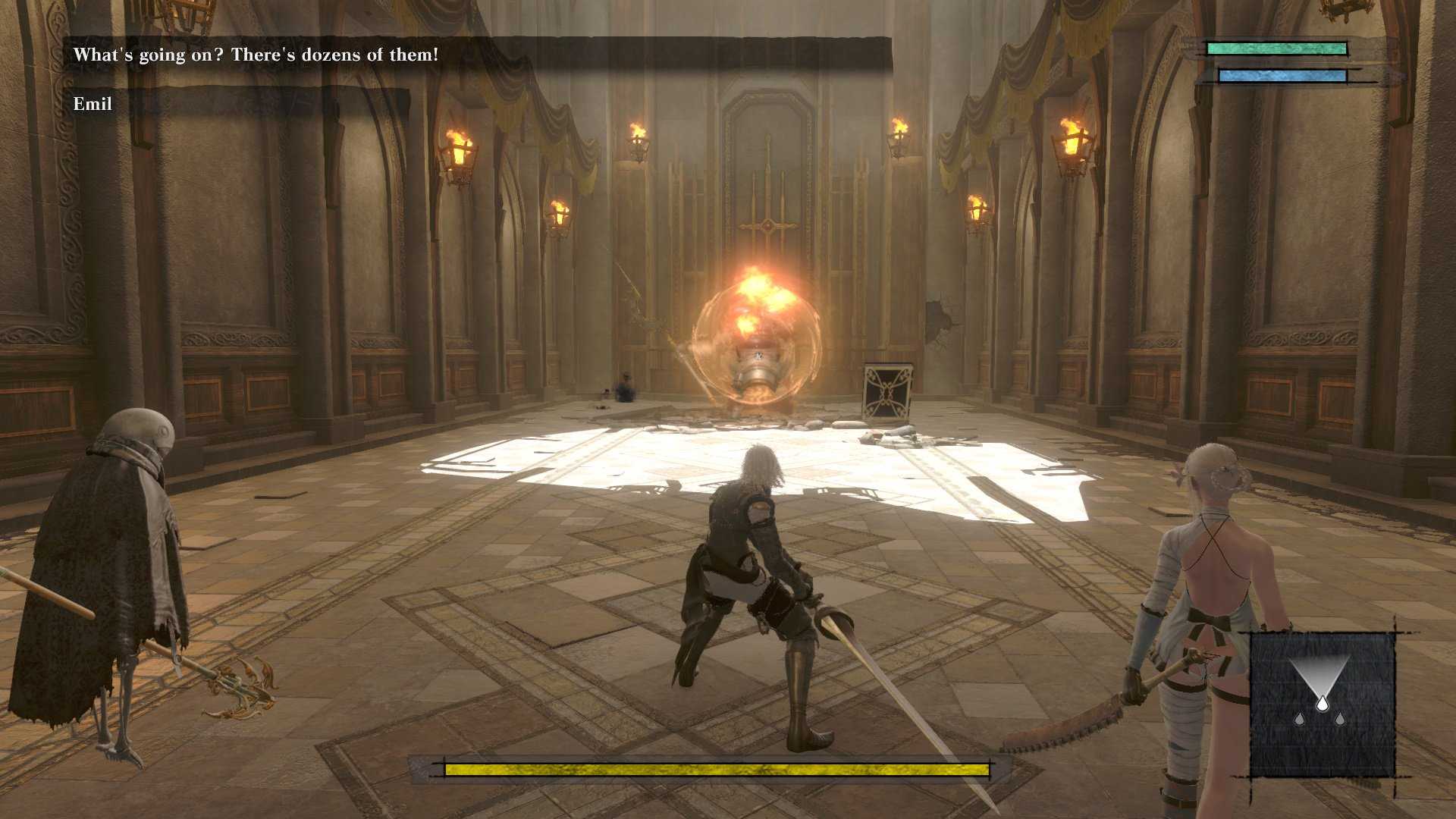 У NieR Replicant сердце экшен-RPG: чаще всего игроку приходится раскидывать толпы одинаковых врагов-демонов с помощью одноручного меча, двуручного меча, копья или магии. Говорят, боевую систему заметно улучшили в сравнении с оригинальной NieR, но она все равно далека от совершенства: сражения ощущаются какими-то легковесными и не всегда четко контролируются. Например, ставить блок или парировать иногда затруднительно – для этого нужно разворачиваться лицом к врагу, а они любят окружать со всех сторон.
