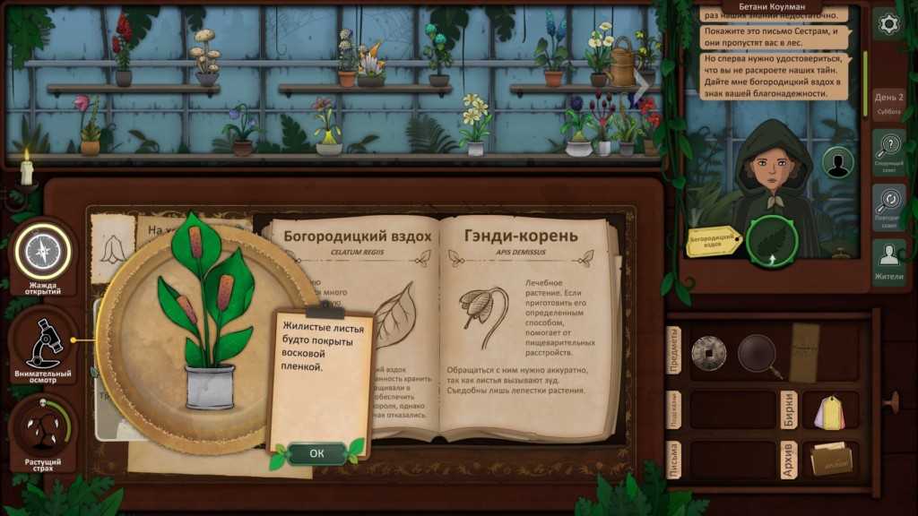 Она сообщает вам о растении в лесу Гризедейл, до которого она не смогла добраться. Вы можете найти его в K19, но сначала вам нужно пройти мимо Сестер. Используйте Сиянец украдчивый.