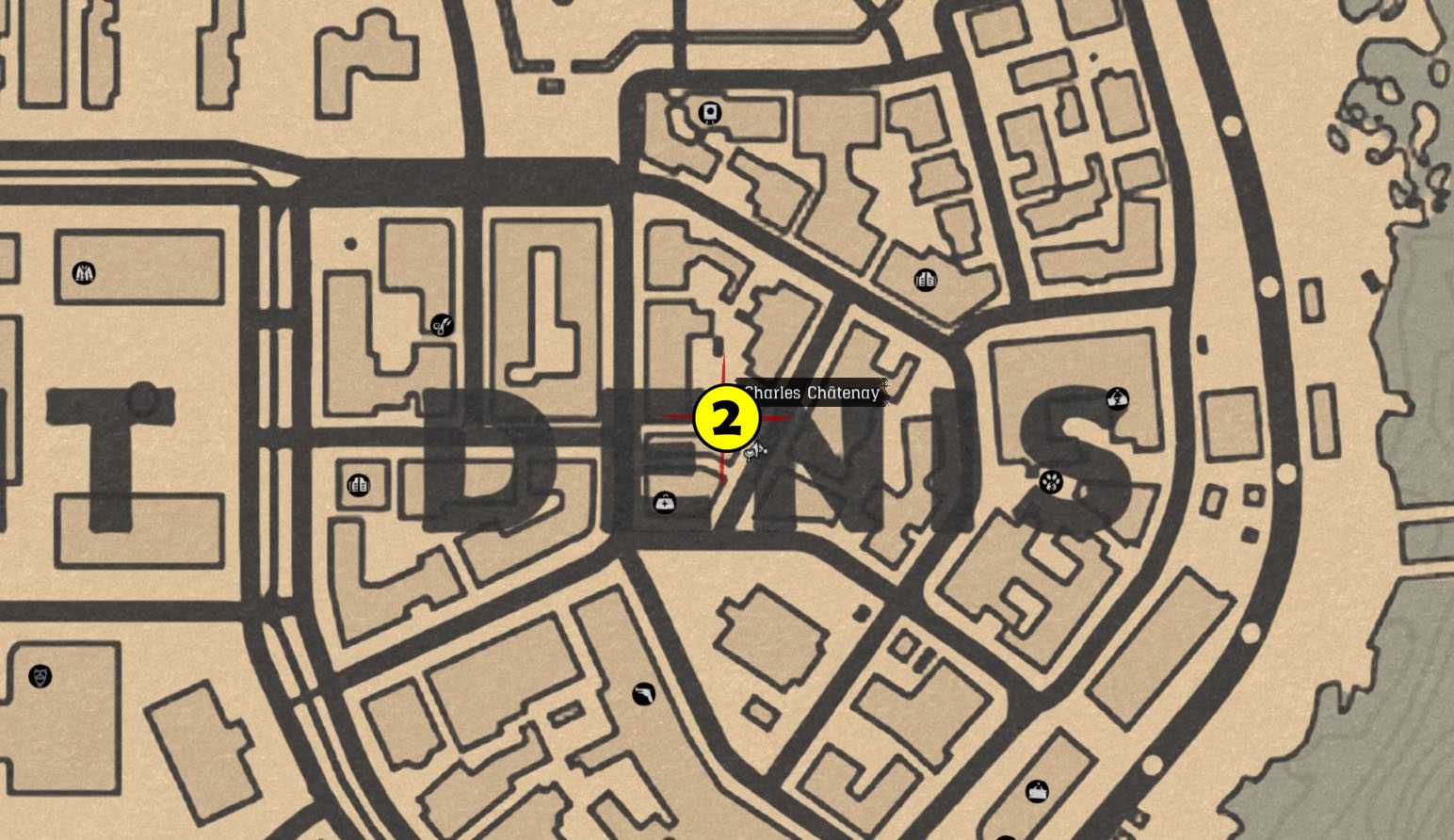 Чтобы начать миссию, идите к Сен-Дени, затем войдите в салон на северо-востоке города (1). Незнакомец находится в середине бара. Поговори с ним.