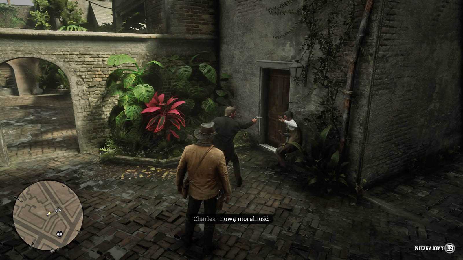 Следующая встреча с Чарльзом проходит по улице (2), в переулке между зданиями. Он будет доступен только через день. Если вы хотите выполнить всю задачу «сразу», выйдите за город и поспите до утра.