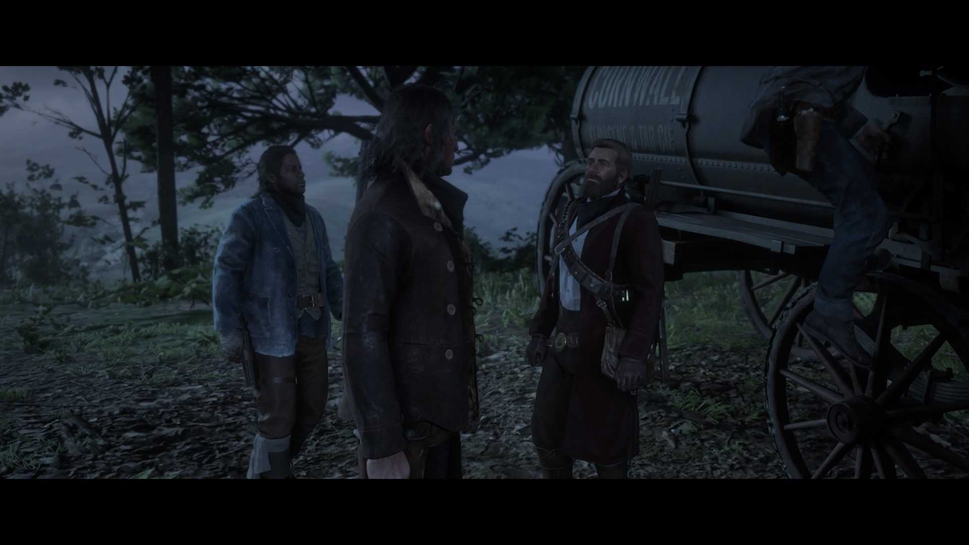 На базе вы должны поговорить с Датчем. Окажется, что из банды ушли еще несколько человек, которых лидер начнет проклинать через каждое слово. Несмотря на ваши возражения, Датч твердо уверен, что ограбление поезда поможет вашей банде благополучно покинуть страну.