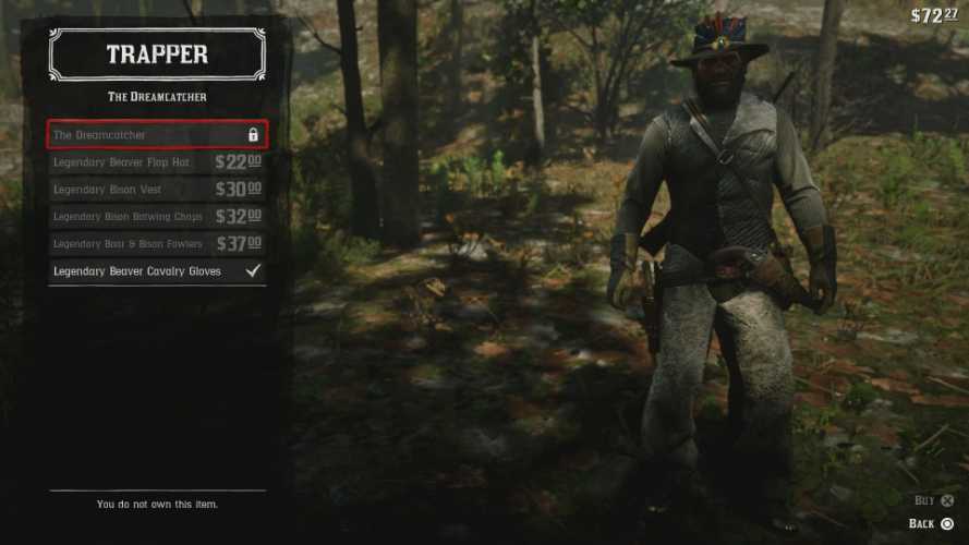 «Ловец снов» — это комплект одежды, который, несомненно, оправдывает свое название благодаря своему величественному внешнему виду. Хотя в основном он состоит из шкурок легендарных животных, и одна из которых может быть недоступна Артуру (без использования эксплойта), это стоит того, учитывая, насколько чертовски свежи эта шляпа и эти охотничьи птицы (ботинки). Кроме того, я бы посоветовал сочетать этот наряд с легендарной шубой из вилорога, просто из эстетических соображений и защиты от холода. В этом конкретном наряде у вас не будет особой защиты от холода, несмотря на то, что вы получите пару парней, теплые перчатки и теплый жилет, но кого волнует, когда вы можете медленно замерзнуть до смерти стильно?