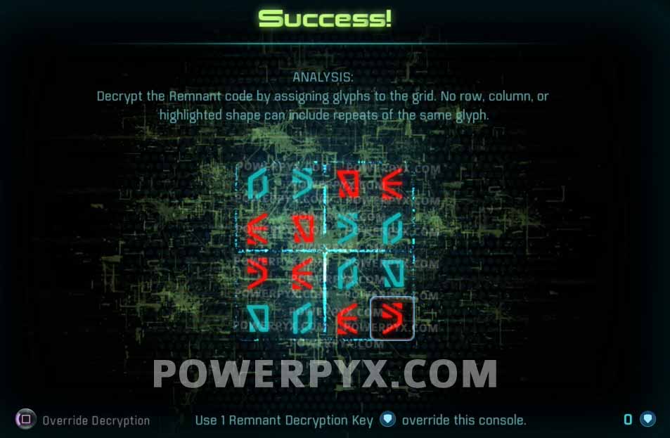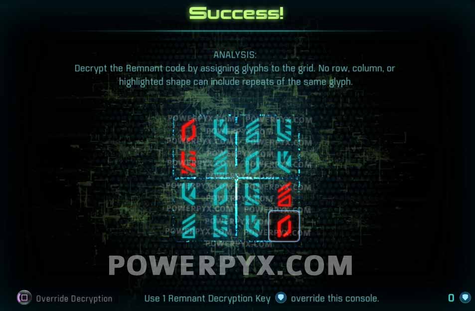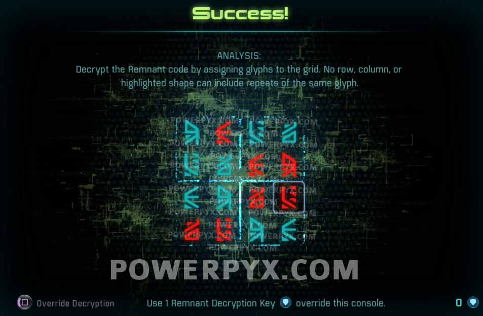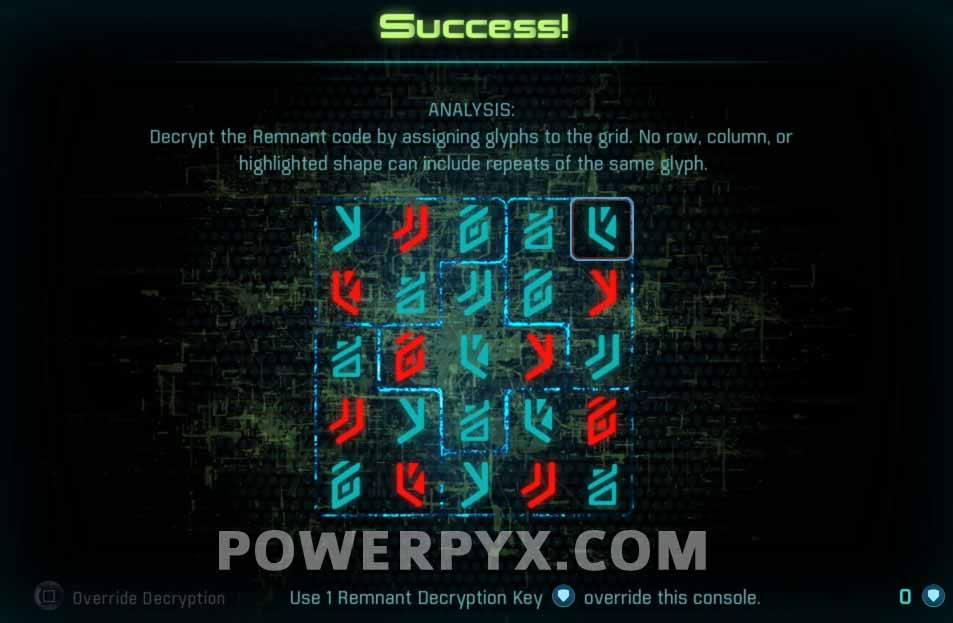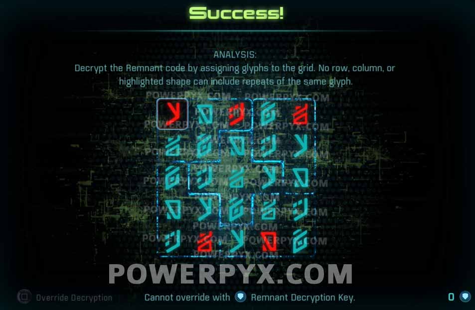 Another Remnant Decryption Puzzle can be found while free roaming Voeld, at the end of a Remnant Vault that you can visit at any time. You go there during the “Subjugation” task but it’s possible to enter without any active quests (credit to DMI605 and Immortal_Joker for the location).