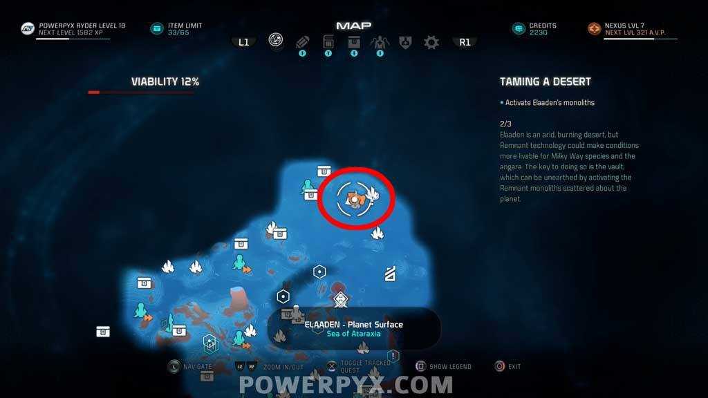 Later into the “Taming a Desert” quest you enter the remnant vault of Elaaden. In the top right corner of the map there’s a remnant puzzle. No glyphs have to be scanned for this one. It unlocks 2 bonus skill points as a reward. Just like all the other remnant vault puzzles this will become unobtainable once you complete the vault.