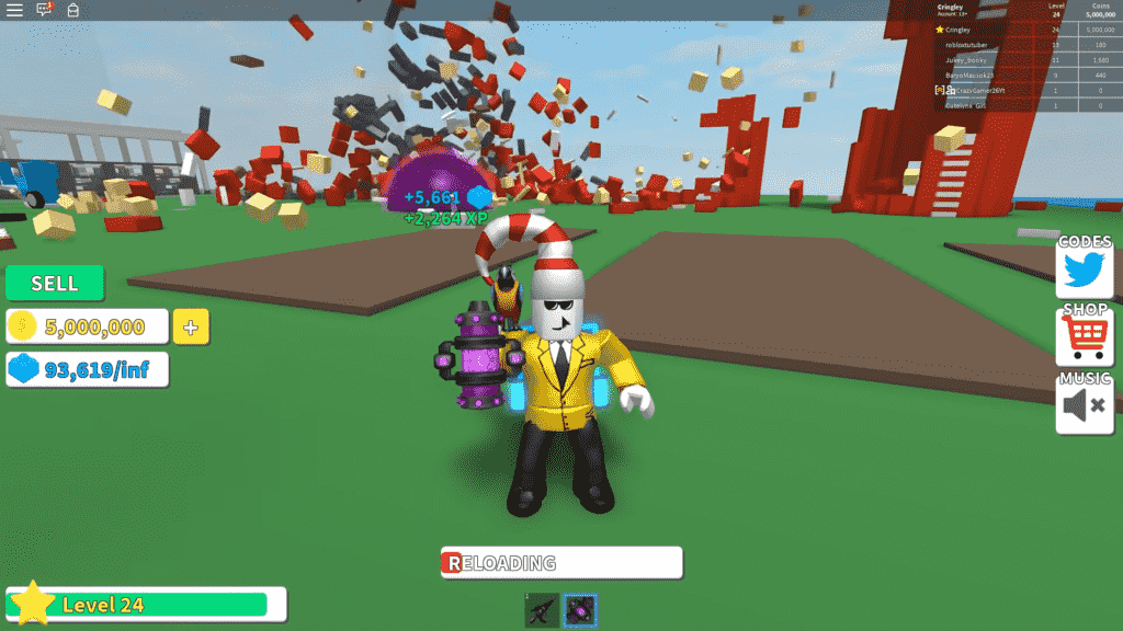 By performing all these actions, you gain XP and level up, which will make you stronger to defeat other players and make progress faster. Roblox Destruction Simulator Codes will give you free coins, which you can use in buying new weapons in the game.