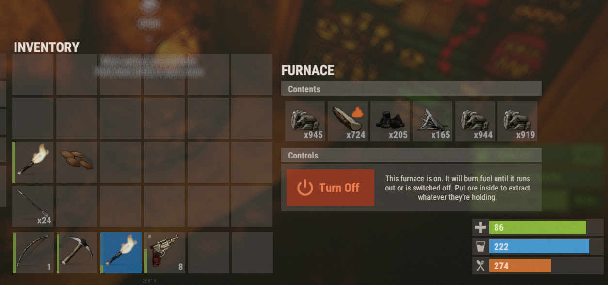 Теперь, когда вы собрали необходимые ресурсы для своей печи, бросьте металлическую руду, которую вы собрали, с помощью дров и включите ее.
