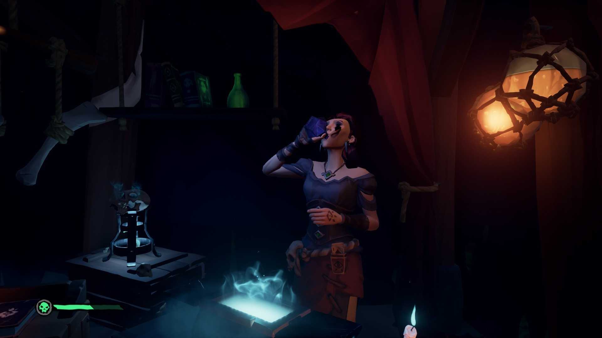 Выпив что-то магическое и явно крепче, чем Ром, эта мадам возьмёт вещи капитанши и превратит их в компас. Достав который на корабле Вы сразу поймёте, что он не показывает на севере, как обычные устройства. Он показывает на местоположение капитанши Бриггси — именно туда нам и нужно отправиться.
