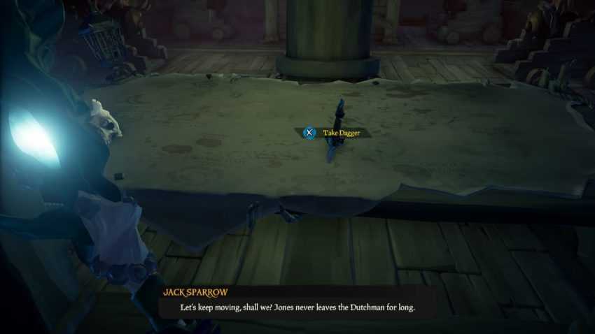 Заберитесь на голландца по лестнице в носовой части корабля. Есть Трезубцы темных приливов разбросаны вокруг, но сосредоточьтесь на открытии двери каюты капитана. Сделайте это, найдя выход на нижнюю палубу, спустившись по лестнице и найдя стол с картой. Нажмите «Взять кинжал», чтобы открыть дверь. Поднимитесь по ступеням и войдите в каюту капитана, в конце которой есть орган.