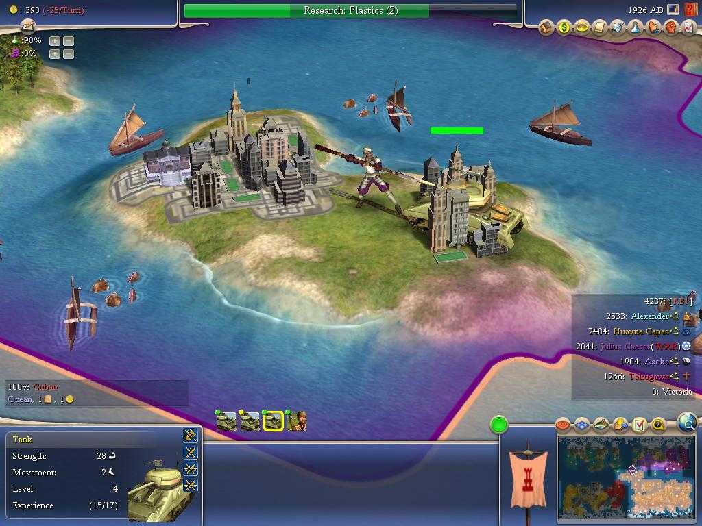 Нам остается либо сражаться за победу в военной науке — развязать войну, захватить города и уничтожить ту или иную цивилизацию (зачем нам тогда столько войск?). Или же направиться в ракетостроение и строение чудес света. А тут уже фаза завершающая. Мы можем нехило взять туризма из экономических карточек.