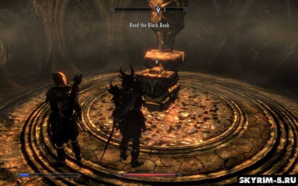 Проходим в глубь, в Temple of Miraak Sanctrum, пока не найдем стойку с Черной Книгой: