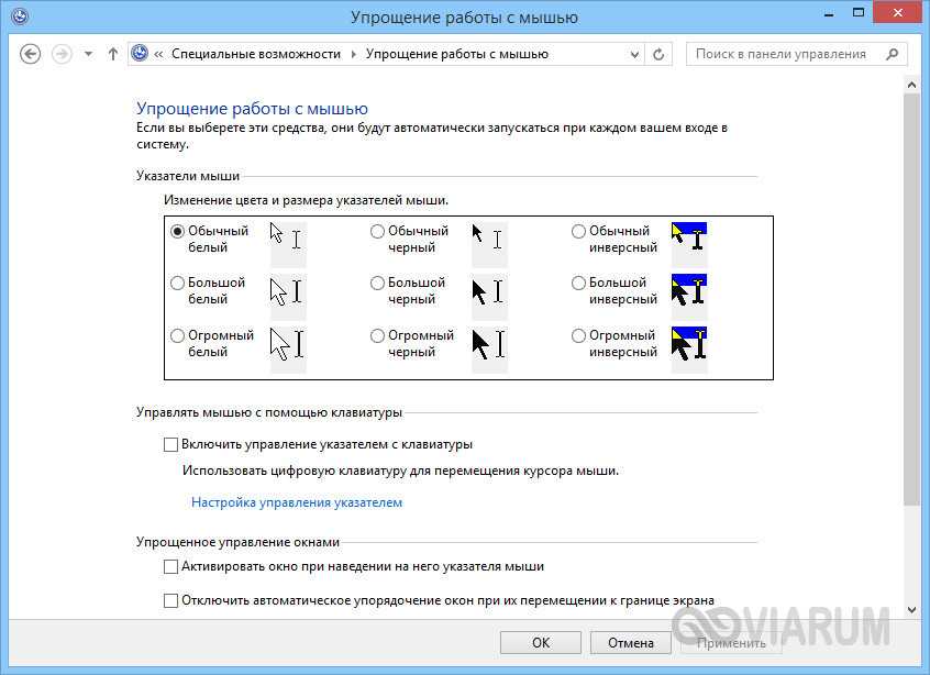 В открывшемся окне вам будет предложено выбрать один из девяти режимов отображения курсора: обычный, большой и огромный белый, обычный, большой и огромный черный и обычный, большой и огромный инверсный. Это самый простой способ увеличить курсор в Windows.