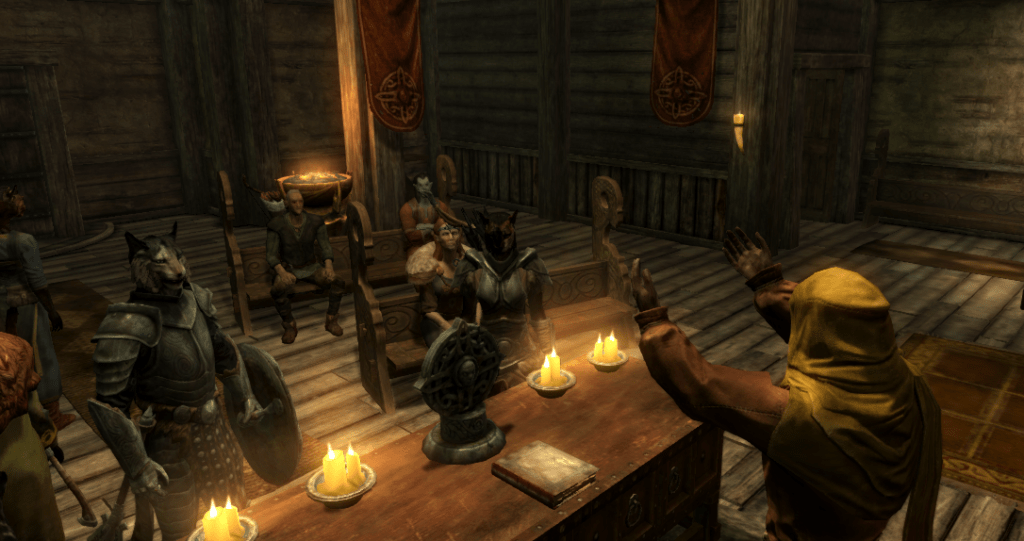 В таверне «Старый Хролдан» живет и работает трактирщица Эйдис. Ее сын Скали время от времени спрашивает мать, куда делся их отец Фирир, а она отвечает, что ушел защищать честь Империи или воевать за Ульфрика. Когда сын подловит ее на том, что это разные стороны, станет понятно, что она что-то скрывает.
