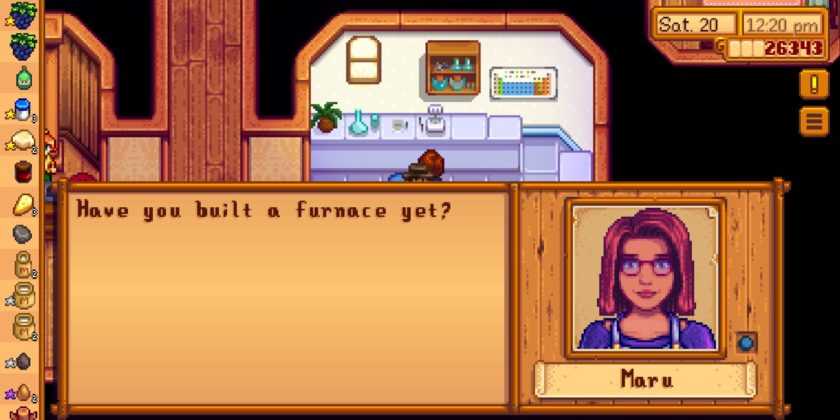 Мару из Stardew Valley – дочь городского плотника Робина и Деметриуса. Она любит возиться с машинами и экспериментировать со своим отцом-ученым. Подрабатывает в городской поликлинике.