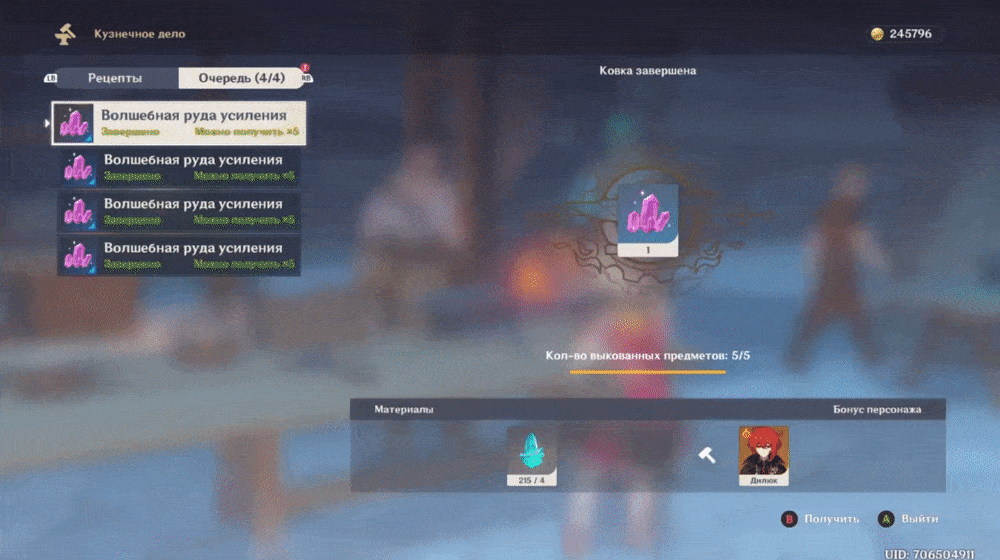 Конкретно для кристальной руды доступно 6 запросов по 5 шт. в каждом, что на выходе принесёт нам: 30шт. волшебной руды усиления.