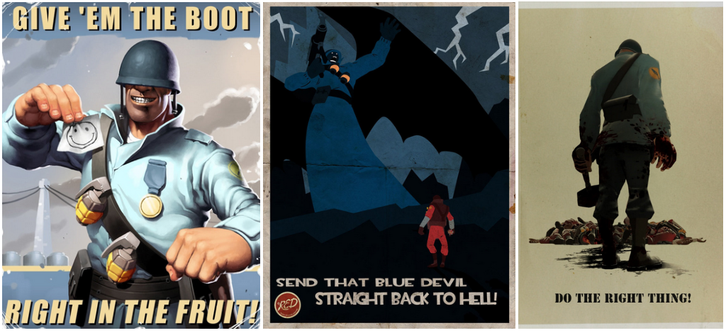 Проводились конкурсы – например, во время обновления «Война!» был счетчик убийств солдатом подрывника и наоборот. Солдат обошел (6,406 млн убийств) подрывника (6,372 млн), в результате чего для солдата выпустили предмет Штурмботинки. Параллельно с этим игроки могли создавать плакаты в поддержку участников: победители творческого конкурса и еще 40 его участников получили шапки.