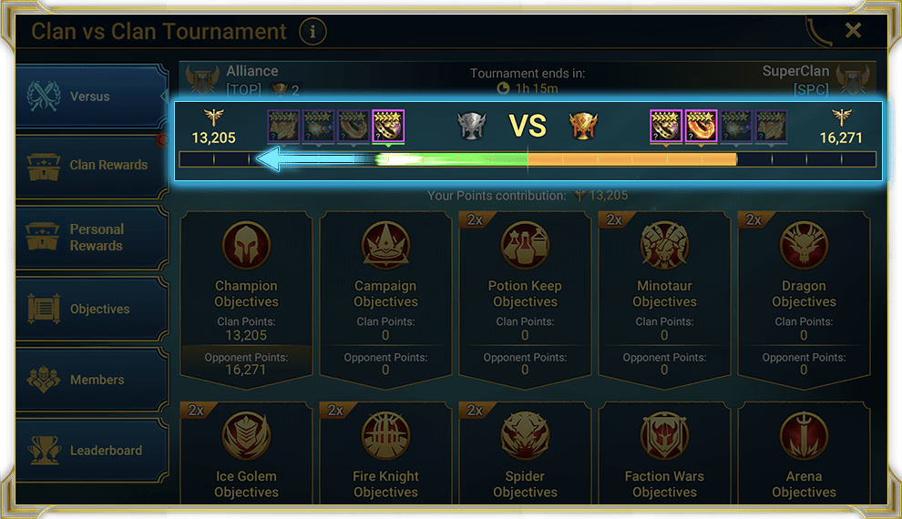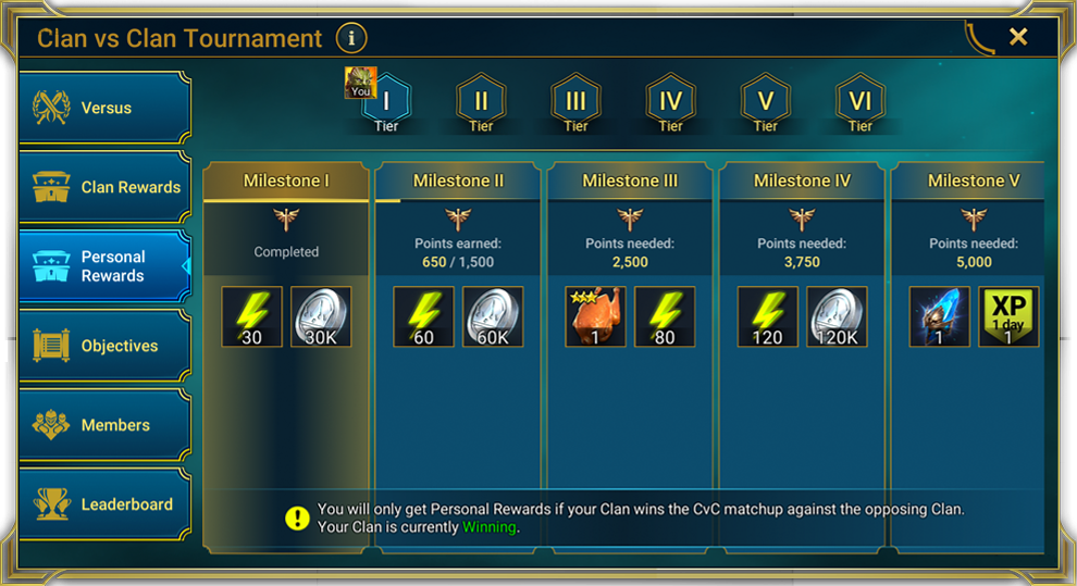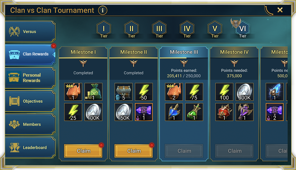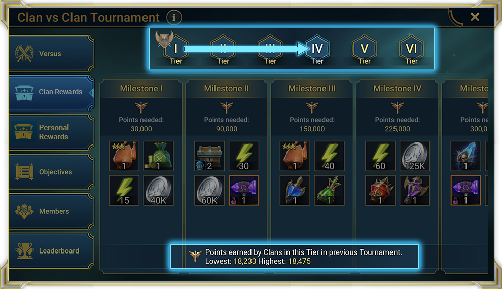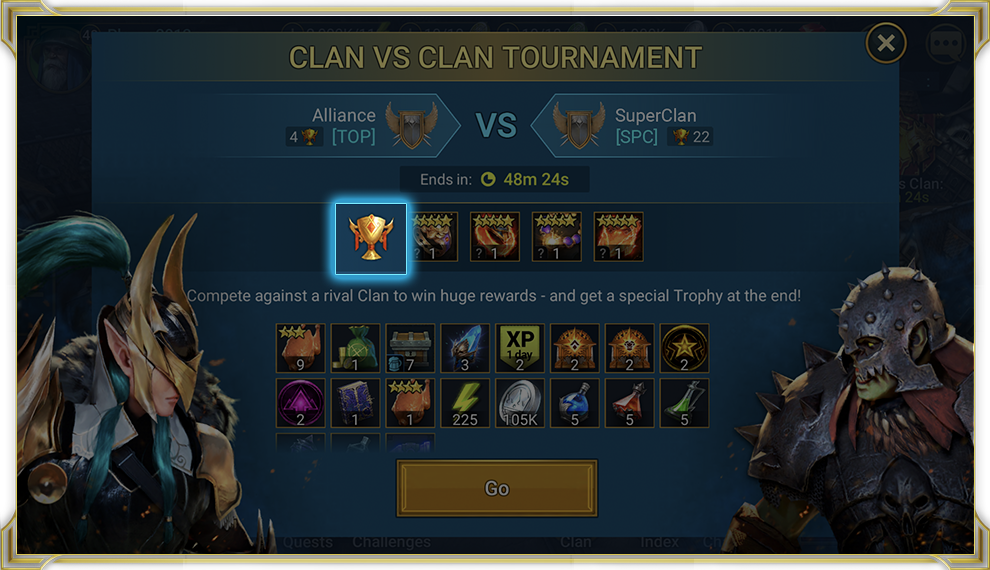 Турнир кланов – это событие, в котором два клана соревнуются друг с другом за награды. Каждый клан зарабатывает очки, выполняя разные внутриигровые действия, однако для обоих кланов предусмотрены награды просто за участие.