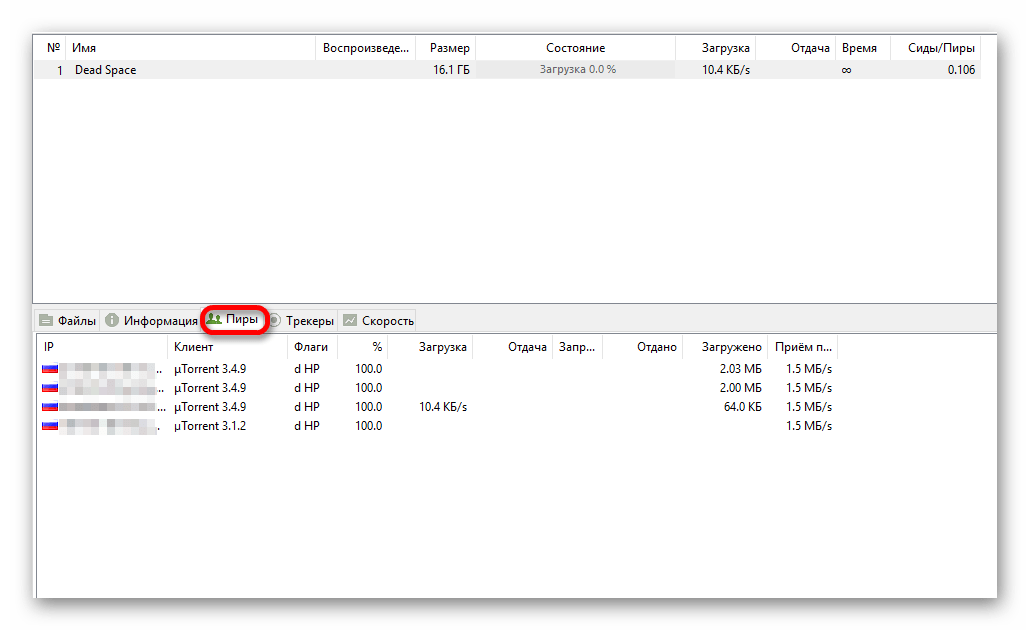 Метод 2: Просмотр пиров в torrent-клиенте