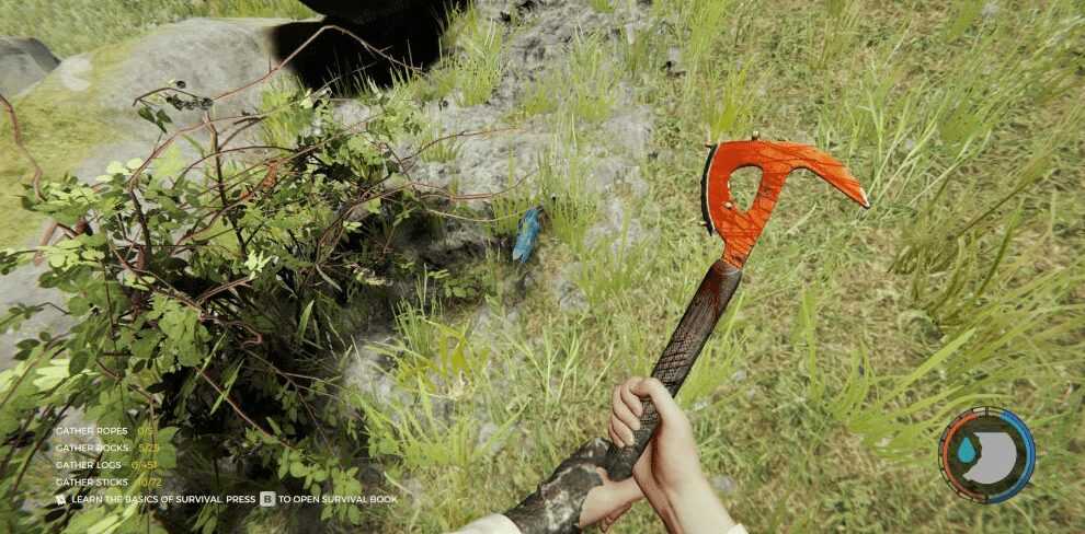Кончик: Вы можете качаться сколько угодно в The Forest, но способ совершить успешный поворот вниз – это повернутый камерой полностью к полу. Это позволит вашему персонажу выполнить другую анимацию, в которой он держит топор над головой обеими руками и наносит удары вниз вместо обычного бокового удара.