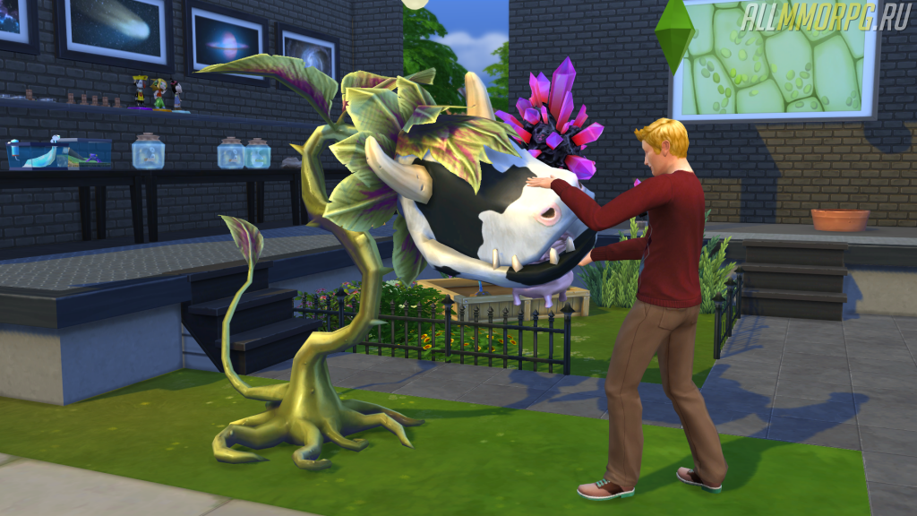 «Жвачное» растение или Проглотис Людоедия – одно из самых таинственных и забавных существ в Sims 4. Оно представляет собой огромный цветок, у которого вместо бутона голова коровы с выменем.