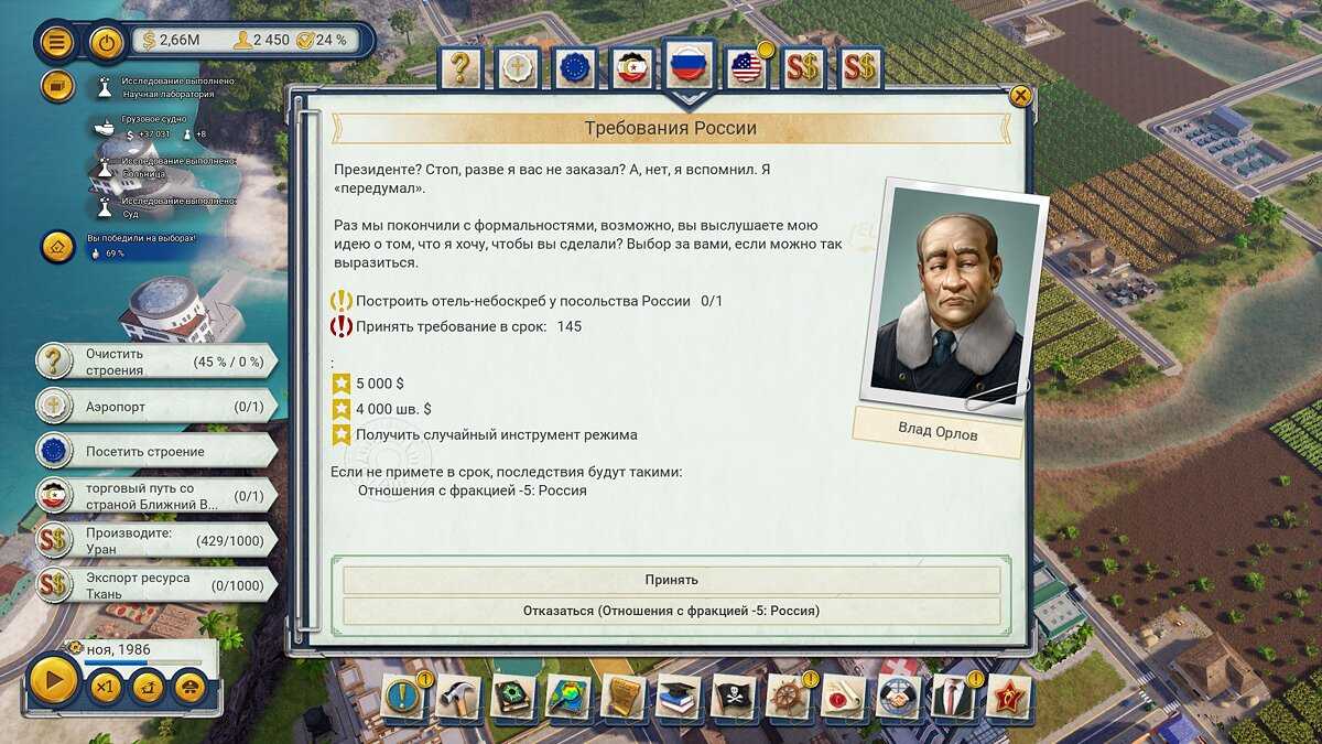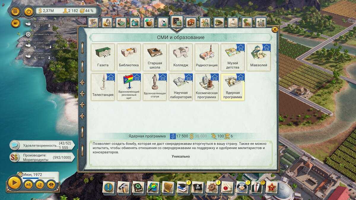 Но кто бы продал хоть что-то, связанное с оружием вроде авианосца и атомной программой, государству Карибского бассейна? В Tropico 6 это не проблема, просто держи карман шире… только вот разрушается связь с реальностью.