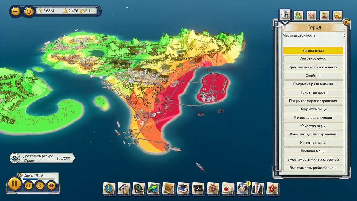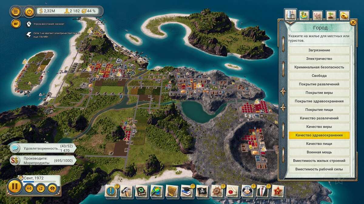 Даже если остров один (такие карты встречаются), он будет просто колоссальных размеров и его можно застраивать с двух-трех сторон. А постоянный рост населения потребует серьезной работы над улучшением качества жизни в каждом из районов.