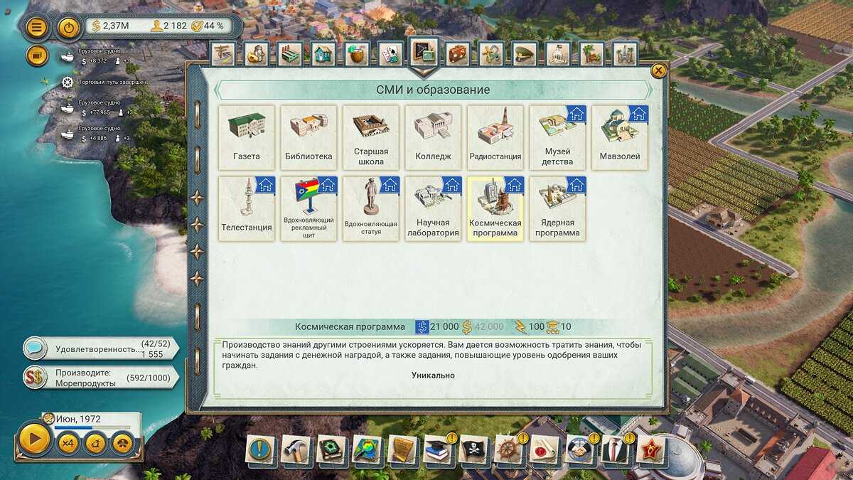 Либо их можно сразу купить в меню строительства, включая АЭС, космическую и ядерную программы: