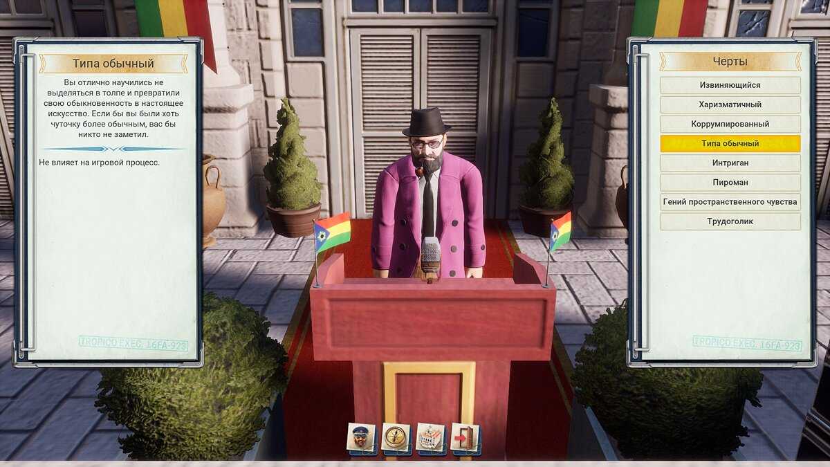 Вначале игры вы разрабатываете внешность своего персонажа и свой дворец в соответствии со своими идеями. Разве не было бы приятно смотреть, как вы- президент потягивает сигары и ром, пока разъяренная толпа паникует за пределами дворца? Но на самом деле у вас есть более важные дела в «Тропико 6» в любом случае.
