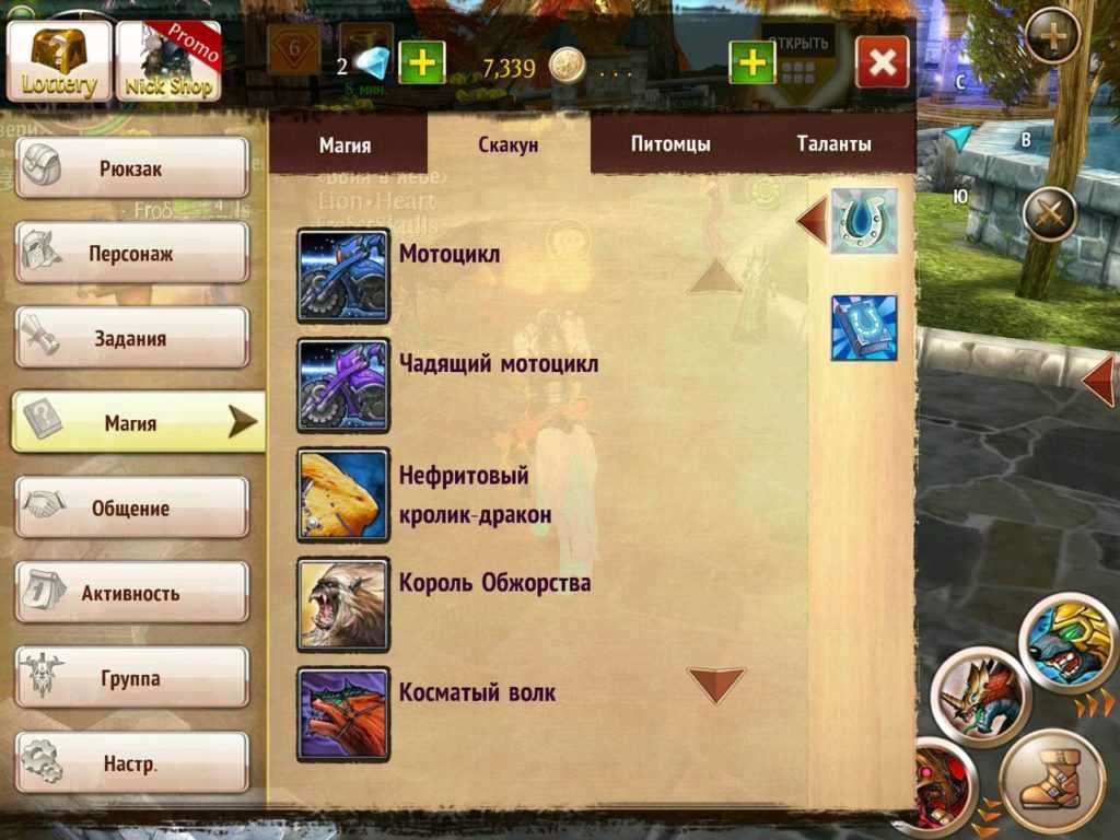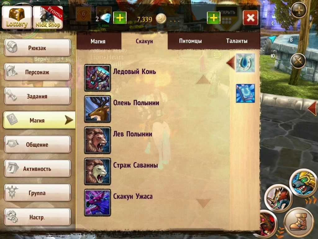 Отдельным для меня видом искусства было искать и ловить редких скакунов и питомцев. Их поймать очень сложно, так как они появляются редко в разных локациях в определенное время и как правило в PvP зоне. А желающих игроков заполучить таковых было много. Иногда ловить ходили целыми кланами, чтобы убивать других, пока соклановец ловит. Также много часов стояли в указанном месте, чтобы моментально воспользоваться ловушкой. Все скакуны имеют свои характеристики, редкие понятно во много раз быстрее скакунов обычной редкости. Питомцы в свою очередь увеличивают какие-либо параметры персонажа. Естественно все это можно приобрести за донат, но Gameloft сделали платных скакунов совершенно другими. Причем они уступали по скорости особо редким и не были настолько красивыми с крутыми эффектами. Поэтому приходилось тратить много часов реального времени на то, чтобы поймать желанного зверя.