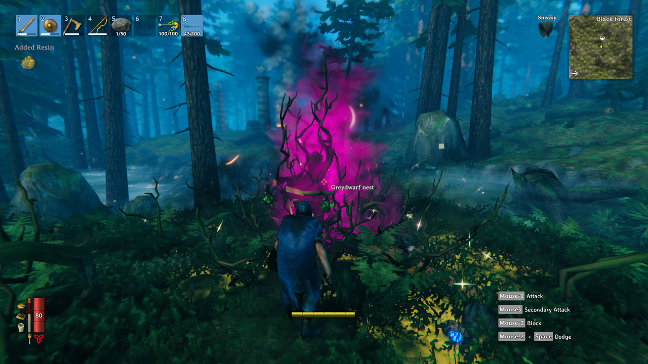 Следующий босс по имени Древний, напоминающий Лешего из The Witcher 3: Wild Hunt, уже не настолько прост в прохождении. Для начала придется запастись как минимум тремя экземплярами семян древних на локации Черный лес, которые с вероятностью в 33 процента выпадают из грейдварфов. Также семена можно найти в сундуках или на алтарях, либо гарантированно получить при уничтожении гнезда грейдварфов. Гнезда вы ни в коем случае не пропустите – заходите в чаще Черного леса и исследуйте окрестности до тех пор, пока не найдете розовую дымку над землей. Источник розового дыма – гнездо грейдварфов, из которой нескончаемом потоком будут появляться противники, пока вы в конечном итоге не закроете портал.
