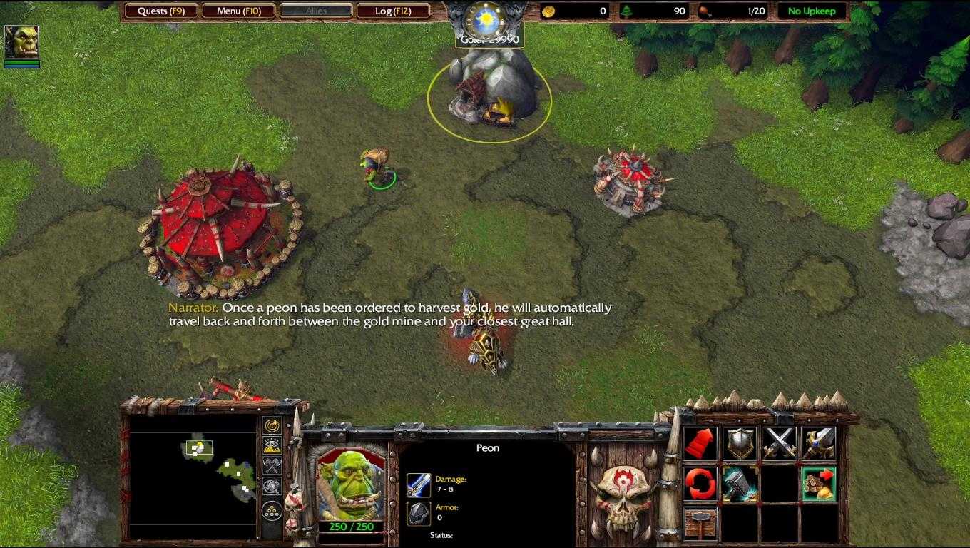 Как мы сказали ранее, специфика добычи ресурсов у разных рас отличается, но есть и сходства. Например, рабочие орков и людей функционально одинаковы: рубят деревья и отправляются в рудники, чтобы затем донести мешок с золотом до командного центра. Поэтому настоятельно рекомендуем размещать центры как можно ближе к рудникам, чтобы по максимуму сократить время на добычу ресурсов.