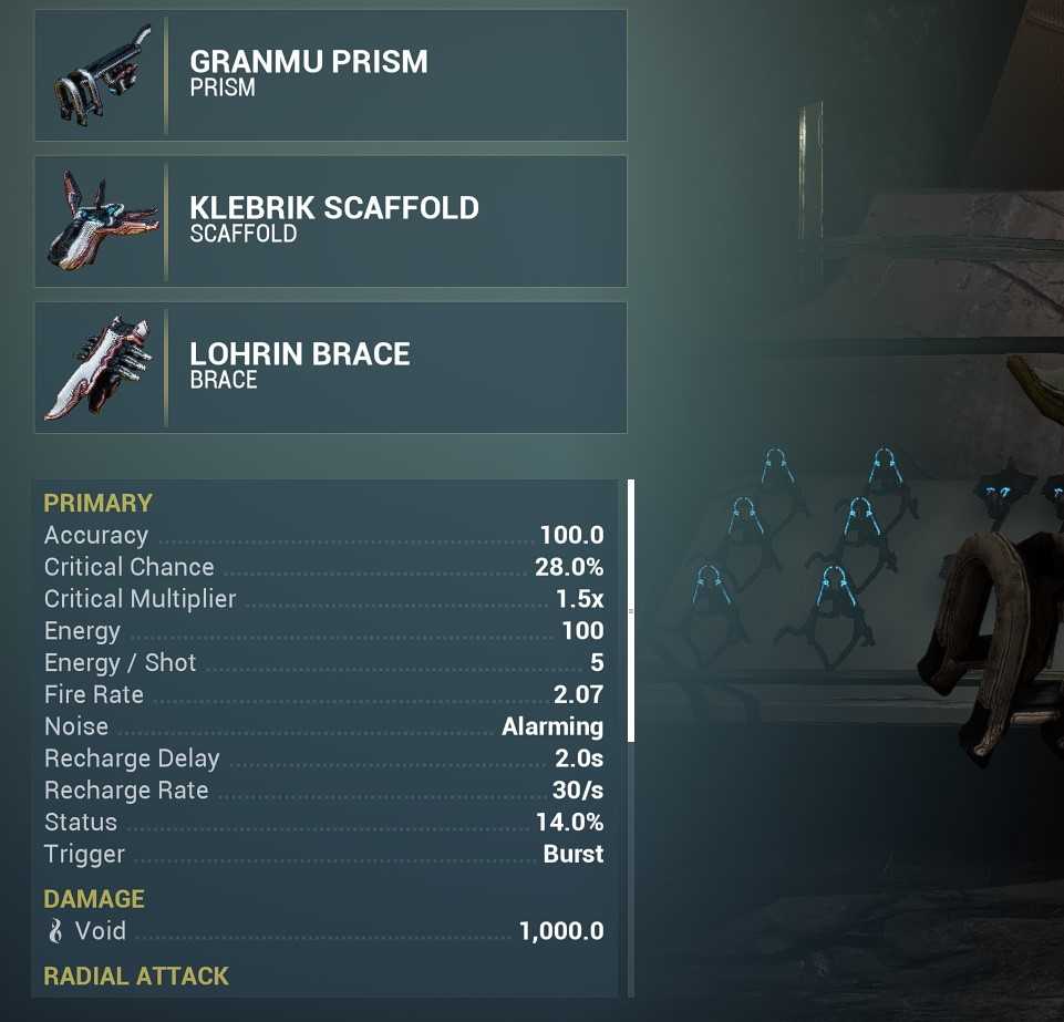 - Клебрик: Луч, который автоматически нацеливается на врагов, даже если они находятся за укрытием. Имеет высокие критические и статусные шансы;