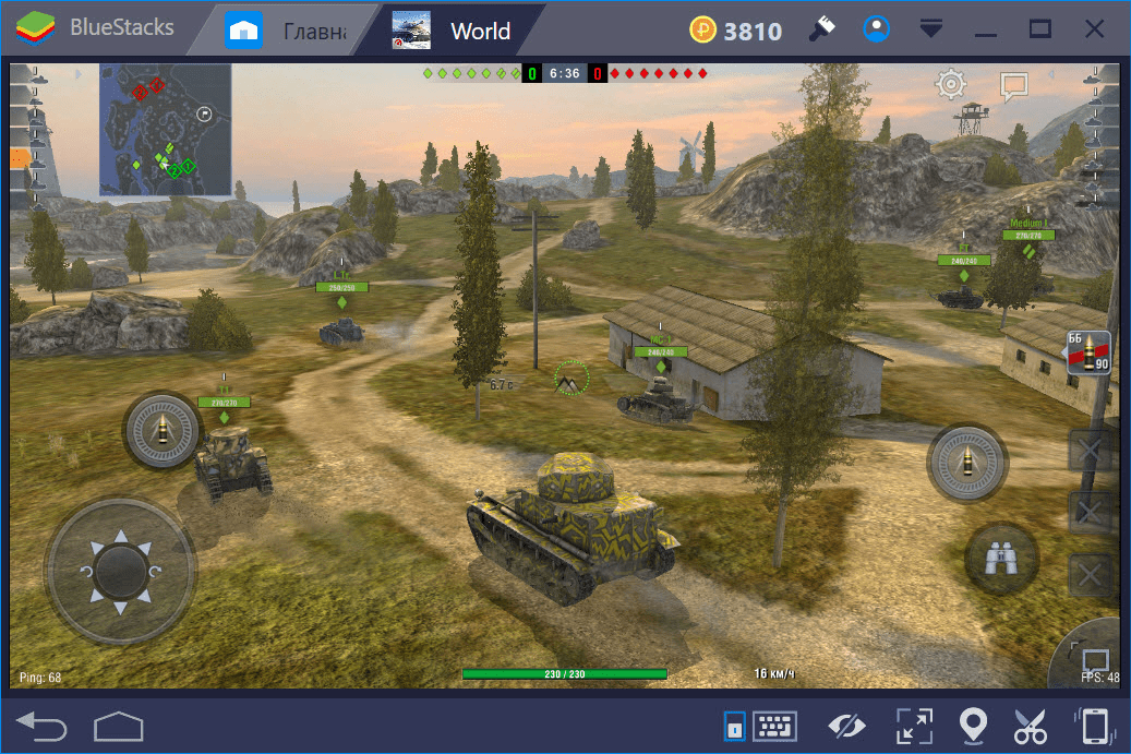 Управление в игре максимально понятное. Передвижения осуществляются при помощи стандартной комбинации на клавиатуре – WASD. Стрелять можно при помощи пробела, а приблизить прицел клавишей F. Обзор и перемещение дула танка осуществляется мышкой. World of tanks blitz на ПК специально разработано с учетом удобства управления, чтобы не отвлекаться на комбинации клавиш в ответственные моменты. Снайперский прицел позволит увидеть вражеские танки – выделяет красным. А специальные настройки позволяют определить наиболее слабые места в машине соперника и грамотно атаковать.