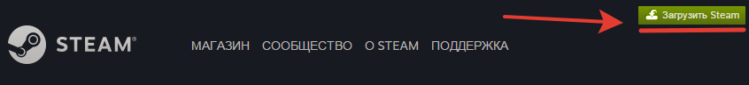 Для этого необходимо перейти на сайт store.steampowered.com и скачать многим знакомое приложение SteamSetup нажав на зелёный ярлык Загрузить Steam в верхнем правом углу сайта, как представлено на изображении ниже. Размер данного приложение не более 2 Мб.