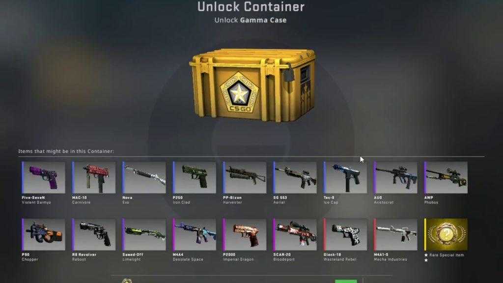 В кейсе Gamma есть подробные скины, которые заложили основу для некоторых из самых невероятных скинов, появившихся на рынке Steam. Некоторые текстуры, включенные в кейс, напоминают профессиональное уличное искусство и придают игре гангстерский вид.