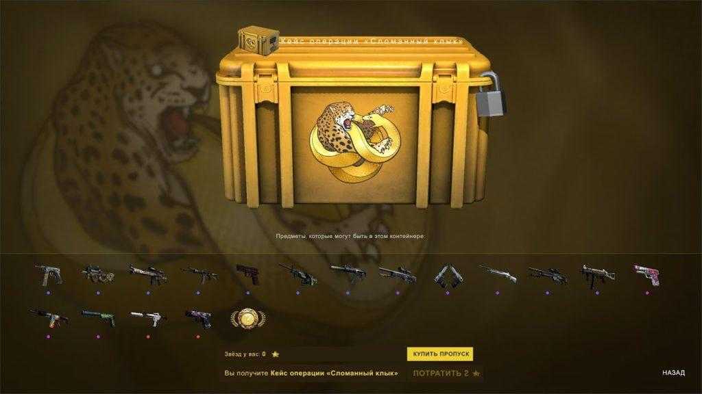Самый бюджетный сундук, который обойдется в 2 рубля. Во время открытия можно легко окупить затраты. Хорошие варианты это M4A4 «Император» 782 — 10 248 руб, AUG «Динамика» 117 — 1 790 руб, AWP «Древесная Гадюка» 99 — 660 руб, UMP-45 «Лунная Ночь» — 18 — 74 руб.