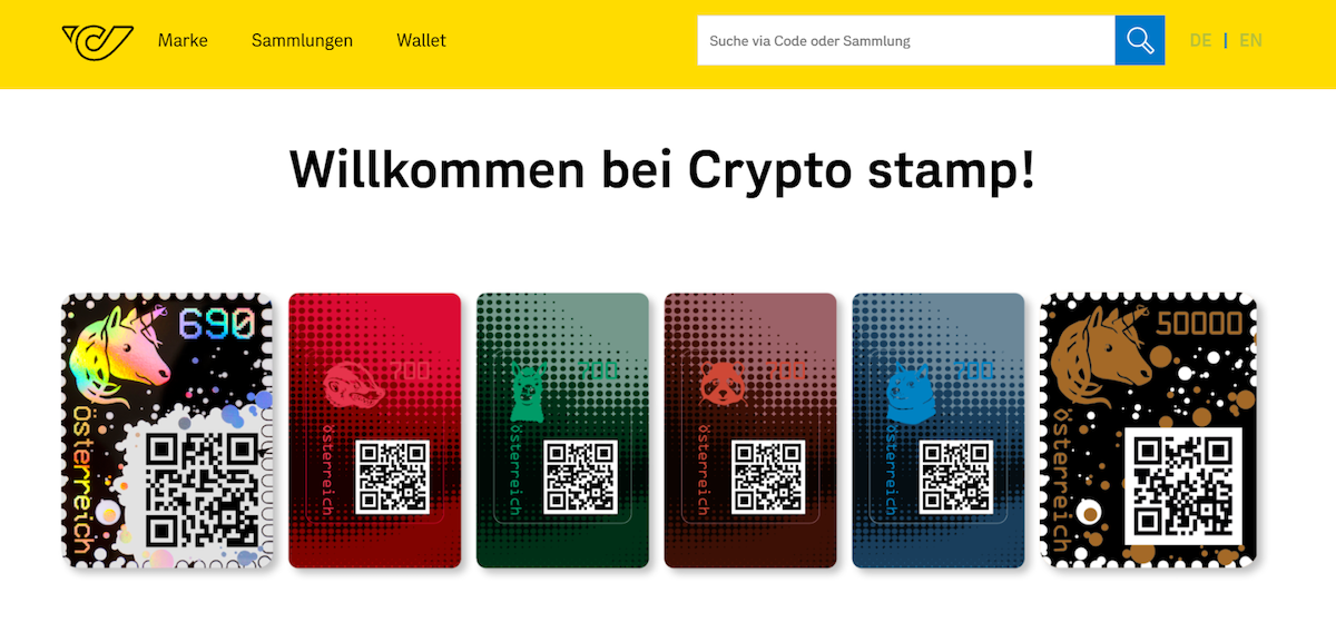 ΠΡΠ΅ ΠΎΠ΄ΠΈΠ½ ΠΏΡΠΈΠΌΠ΅Ρ ΡΠ²ΡΠ·ΠΊΠΈ ΡΠ΅Π°Π»ΡΠ½ΠΎΠ³ΠΎ ΠΈ Π²ΠΈΡΡΡΠ°Π»ΡΠ½ΠΎΠ³ΠΎ ΠΌΠΈΡΠ° ΡΠ΅ΡΠ΅Π· NFTΒ β ΠΏΡΠΎΠ΅ΠΊΡ Crypto Stamp Π°Π²ΡΡΡΠΈΠΉΡΠΊΠΎΠΉ ΠΏΠΎΡΡΠΎΠ²ΠΎΠΉ ΡΠ»ΡΠΆΠ±Ρ. ΠΡΠΎ ΠΏΠΎΡΡΠΎΠ²ΡΠ΅ ΠΌΠ°ΡΠΊΠΈ, ΠΏΡΠΈΠ²ΡΠ·Π°Π½Π½ΡΠ΅ ΠΊ ΡΠΎΠΊΠ΅Π½Π°ΠΌ. ΠΡ ΠΈΡΠΏΠΎΠ»ΡΠ·ΡΡΡ Π΄Π»Ρ ΠΎΡΠΌΠ΅ΡΠΊΠΈ ΡΠ΅Π°Π»ΡΠ½ΡΡ ΠΏΠΎΡΡΠΎΠ²ΡΡ ΠΎΡΠΏΡΠ°Π²Π»Π΅Π½ΠΈΠΉ. ΠΡΠΈ ΡΡΠΎΠΌ ΠΊΠ°ΠΆΠ΄Π°Ρ ΠΌΠ°ΡΠΊΠ° ΡΠΎΡ ΡΠ°Π½ΡΠ΅ΡΡΡ Π½Π° Π±Π»ΠΎΠΊΡΠ΅ΠΉΠ½Π΅ ΠΈ ΠΌΠΎΠΆΠ΅Ρ Π±ΡΡΡ ΡΠ°ΡΡΡΡ ΡΠΈΡΡΠΎΠ²ΠΎΠΉ ΡΠΈΠ»Π°ΡΠ΅Π»ΠΈΡΡΠΈΡΠ΅ΡΠΊΠΎΠΉ ΠΊΠΎΠ»Π»Π΅ΠΊΡΠΈΠΈ.