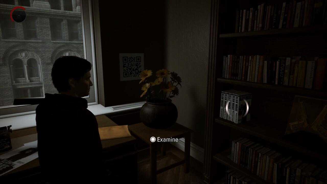 Вы можете найти второй QR-код во время воспоминаний Алана о Нью-Йорке за три года до событий игры. Пройдите в офис Алана, чтобы проверить новые книжные обложки, которые Алиса сделала для него, и вы заметите QR-код на стене, но убедитесь, что вы сделали снимок или отсканируете его, прежде чем взаимодействовать с книгой, иначе вы закончите сцена. Хорошая новость заключается в том, что вы еще пару раз вернетесь к воспоминаниям о Нью-Йорке в течение игры, и код будет ждать в каждом из них, если вы пропустите его здесь.